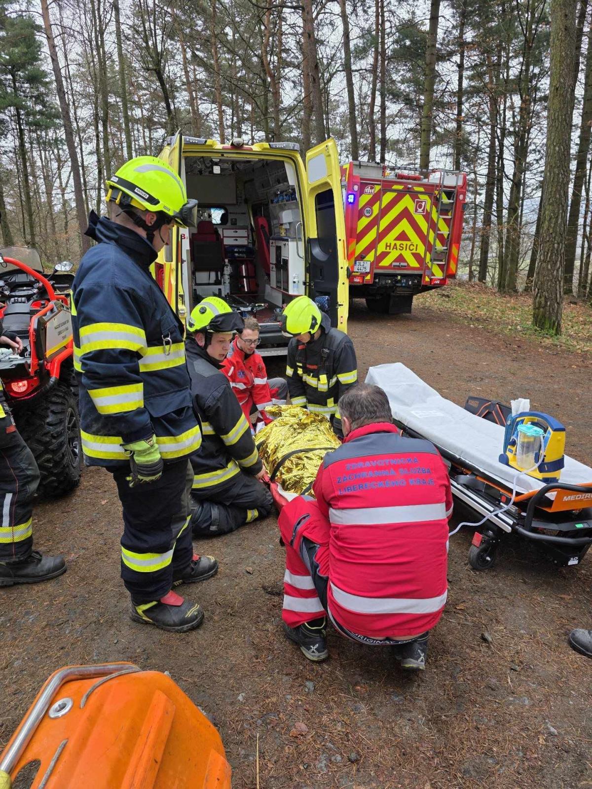 Do Besedických skal nedaleko Turnova hasiči v úterý hodinu a půl před polednem vyjížděli se speciální technikou, aby kolegům zdravotníkům pomohli s transportem zraněné ženy, která si v terénu způsobila úraz dolní končetiny a nebyla schopna dalšího pohybu. Na pomoc spěchali turnovští profesionální hasiči a dobrovolní hasiči obce Koberovy.
