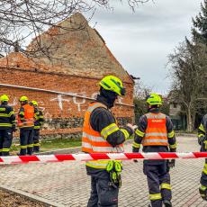 Došlo k pádu jedné štítové zdi a sesunutí střechy na část chodníku.