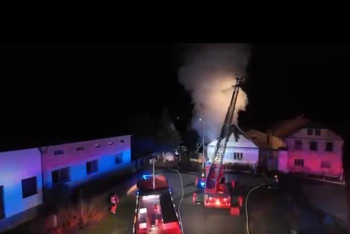 Ve čtvrtek v 02:18 čtyři jednotky hasičů zasahovaly u požáru střechy a krovu rodinného domu v Meclově na Domažlicku. Čtyři osoby se z budovy evakuovaly před příjezdem hasičů. Oheň zasáhl střechu v plném rozsahu.