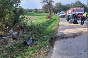 Auto skončilo převrácené na střechu mimo komunikaci v poli, na místě byli tři zranění lidé. Jednotka zajistila místo události, asistovala zdravotnickým záchranářům s poskytováním první pomoci.