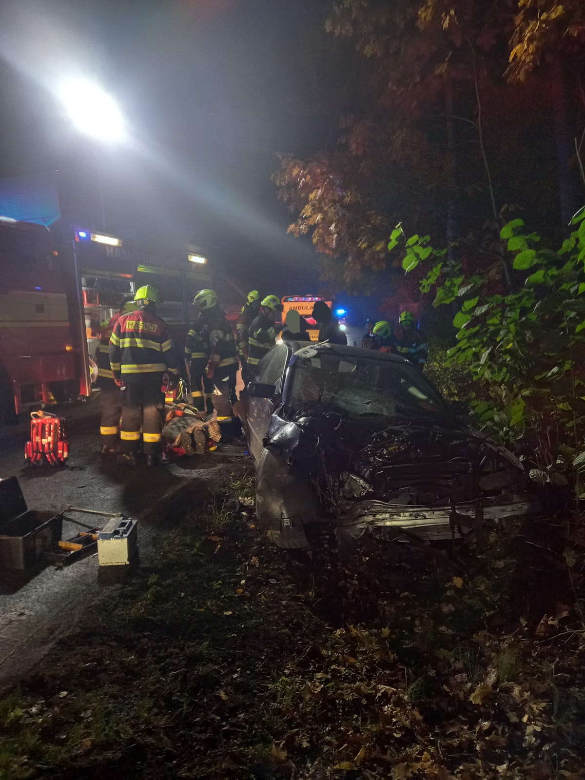 Po příjezdu první jednotky byla potvrzena dopravní nehoda jednoho osobního automobilu se zraněním tří osob, z toho jedna s nutností vyproštění.