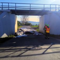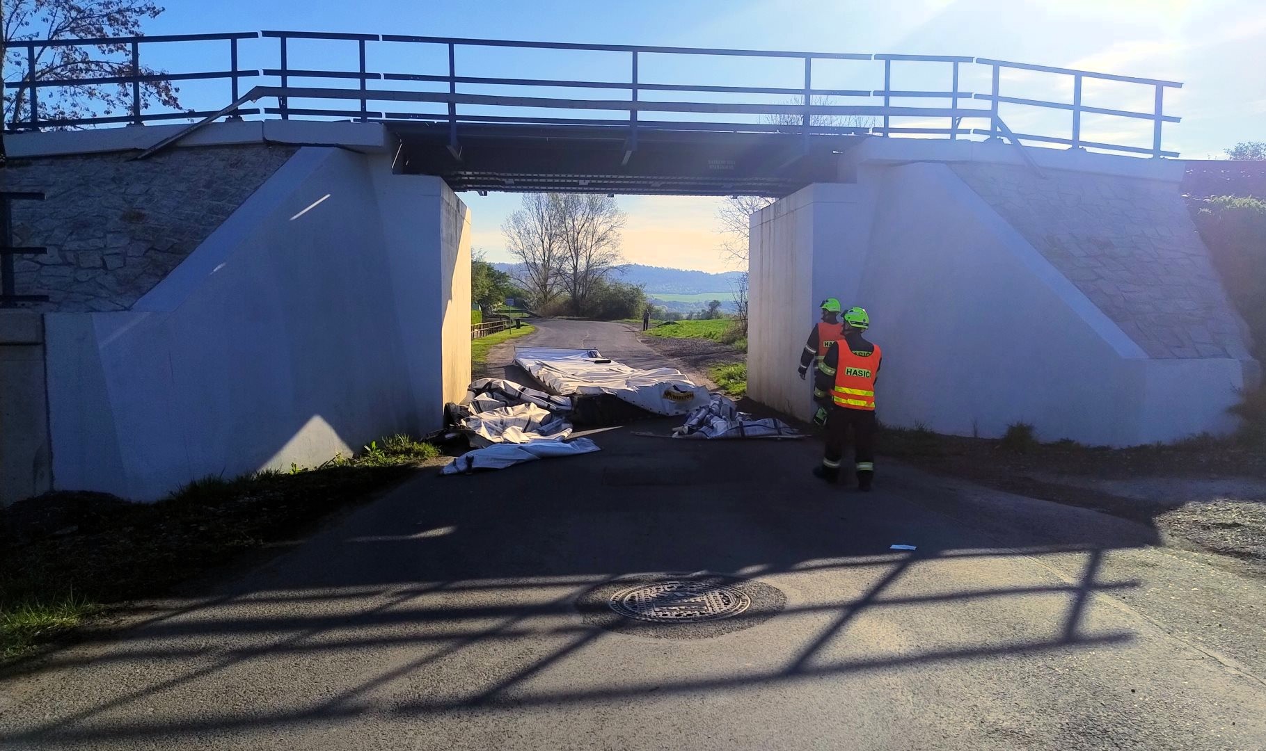 Po příjezdu hasičů ze stanice v Lounech a podnikových hasičů Správy železnic Chomutov už kamion průjezd pod mostem neblokoval. Pod viaduktem však zůstala ležet horní část návěsu, kterou si souprava o most strhla. Hasiči následně pomohli s jejím odstraněním ze silnice.