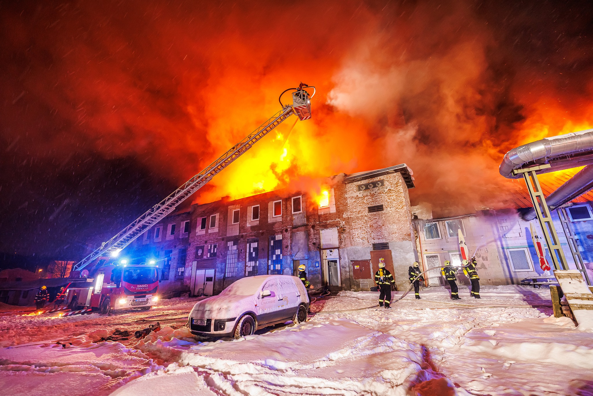 V sobotu krátce před půl jednou ráno přijalo operační středisko hasičů hlášení o požáru objektu v ulici Polská v části Poříčí. Už při příjezdu prvních jednotek na místo byl požár značně rozšířen na větší část budovy. Hasební zásah bylo nutné vést pouze zvenčí objektu a z výškové techniky, pohyb uvnitř byl nebezpečný. Práci hasičům komplikovalo sněžení i mráz. Kvůli zamrzlým hydrantům museli dovážet vodu na požářiště z čerpacích stanovišť cisternami dobrovolných hasičů. Právě s ohledem na počet zasahujících jednotek byl vyhlášen nejprve 2. a pak i 3. stupeň požárního poplachu.