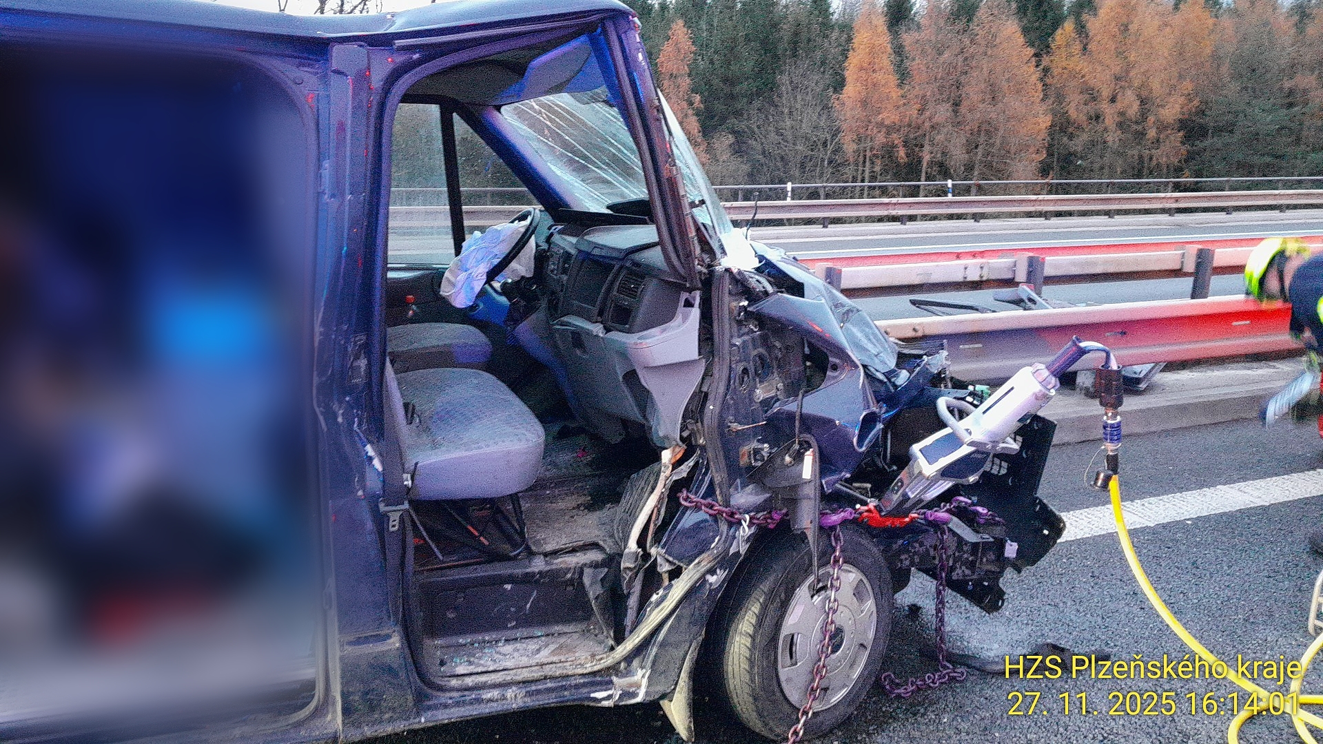 Jednotce bylo dopředu avizováno, že v dodávce zůstaly dvě zaklíněné osoby. Okamžitě bylo zahájeno vyprošťování pomocí hydraulického zařízení, které trvalo pouhých 14 minut. Obě vyproštěné osoby byly následně předány do péče Zdravotnické záchranné službě a transportovány do zdravotnického zařízení.