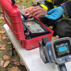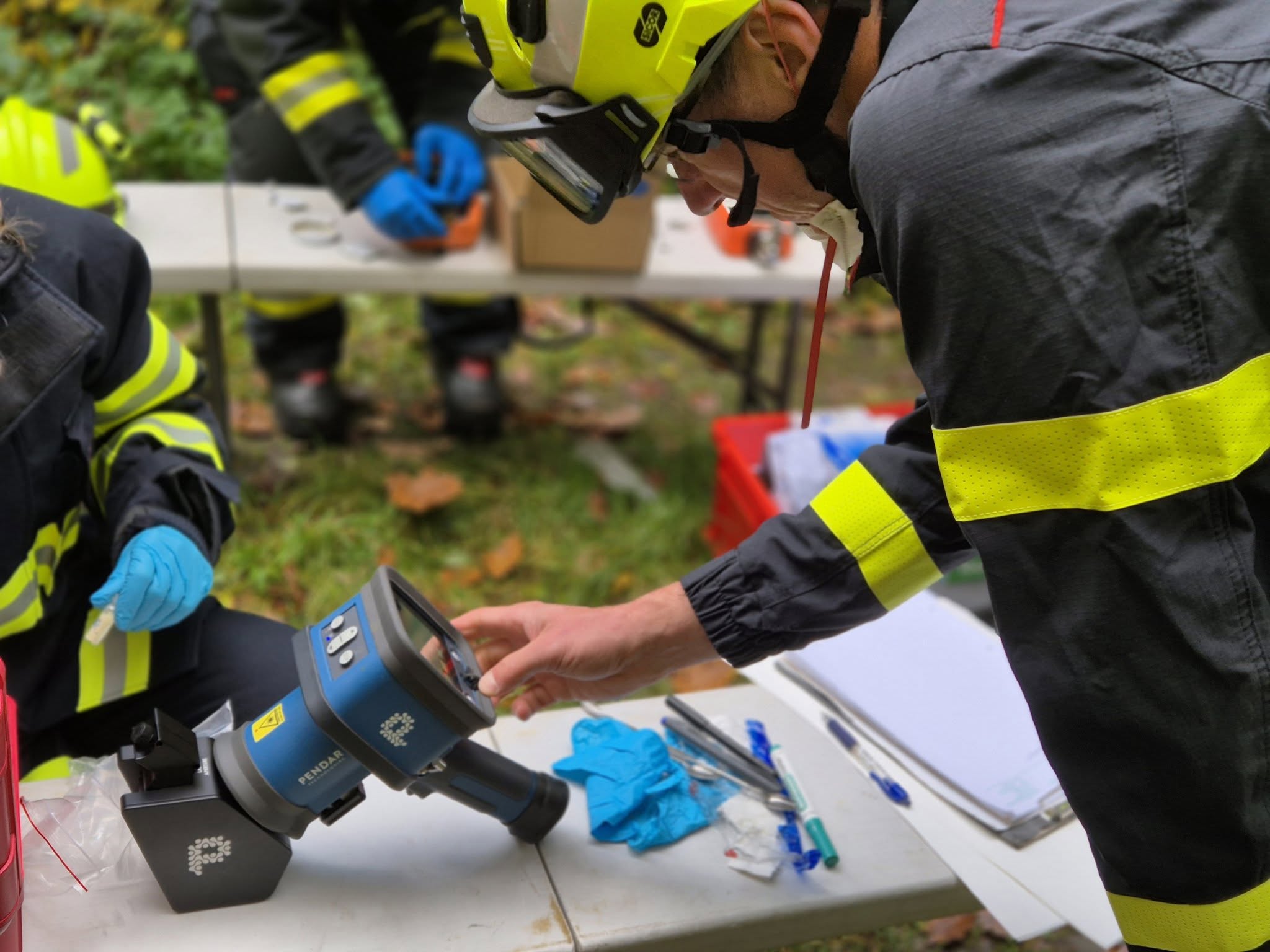 Při zásahu bylo nalezeno 23 nestandardních obalů s neznámou látkou, přičemž jeden z obalů byl označen jako chloristan amonný. Na místě bylo odebráno 30 vzorků, které byly analyzovány pomocí kombinace Ramanovy a infračervené spektrometrie.