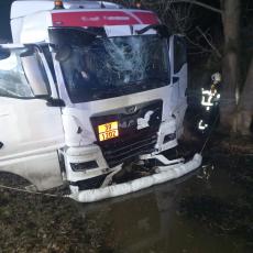 K dopravní nehodě cisternového nákladního vozidla vyjížděly ve čtvrtek v 17:42 čtyři jednotky hasičů. Po příjezdu první z nich bylo zjištěno, že cisterna jedoucí po silnici č. I/11 skončila mimo komunikaci v příkopu a částečně v potoce.