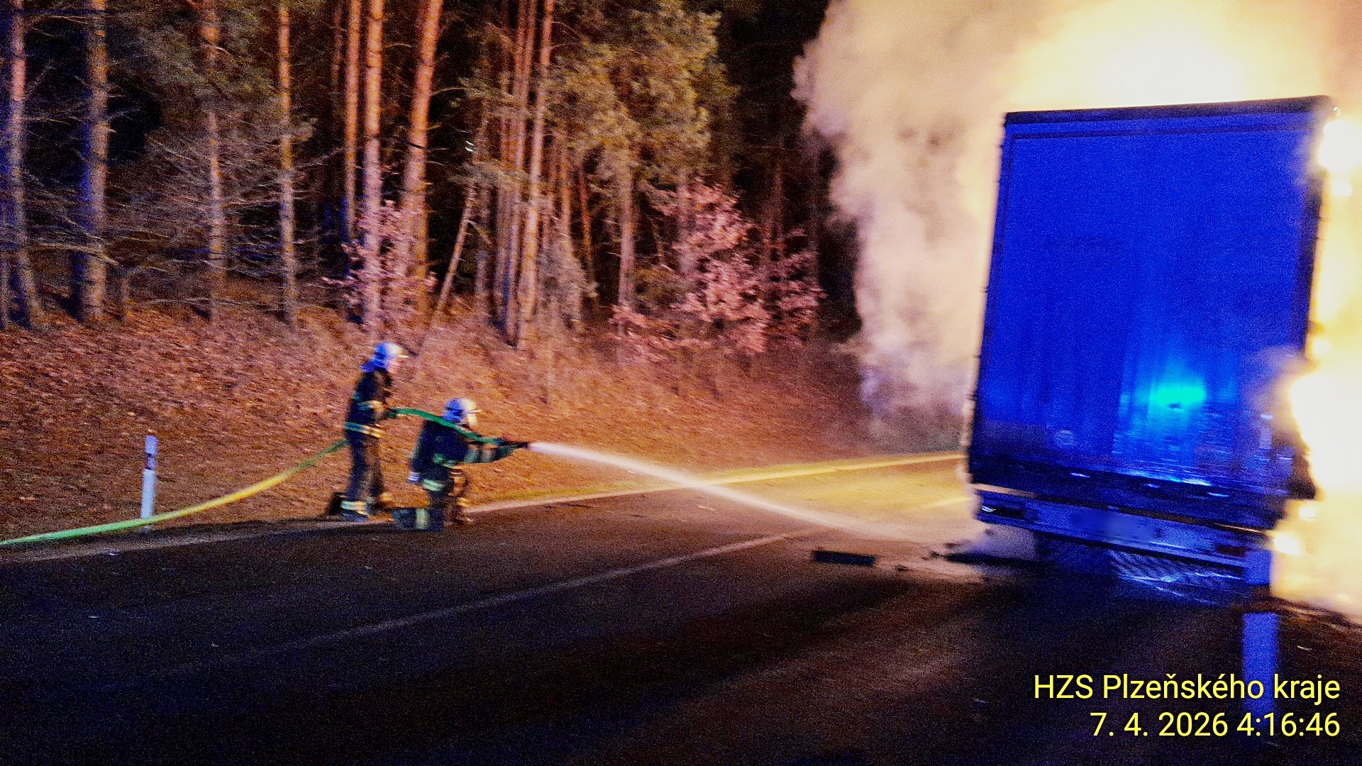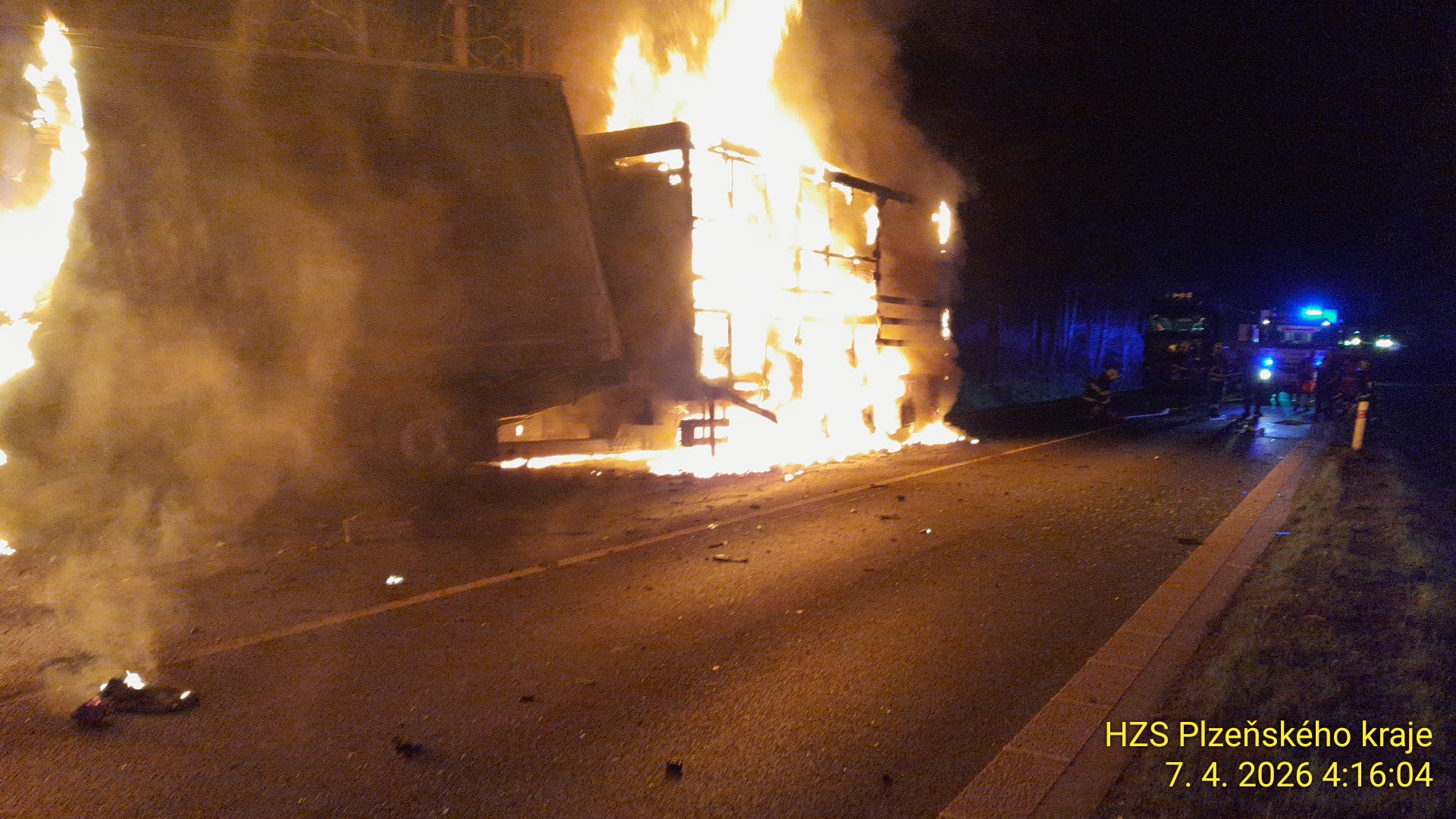 V úterý brzy ráno a 34,5 km silnice 26/I zhruba na úrovni Holýšovského rybníku došlo k nehodě a následnému požáru nákladního a osobního automobilu. K hašení obou vozidel hasiči nasadili čtyři vodní proudy. Z nákladního automobilu uniklo asi 100l nafty, kterou hasiči zachytávali sorpčními prvky.
