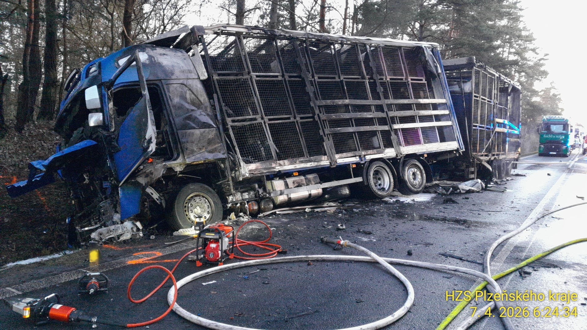 Po uhašení požáru hasiči z osobního vozidla vyprostili jedno tělo. Komunikace byla po dobu zásahu uzavřena.