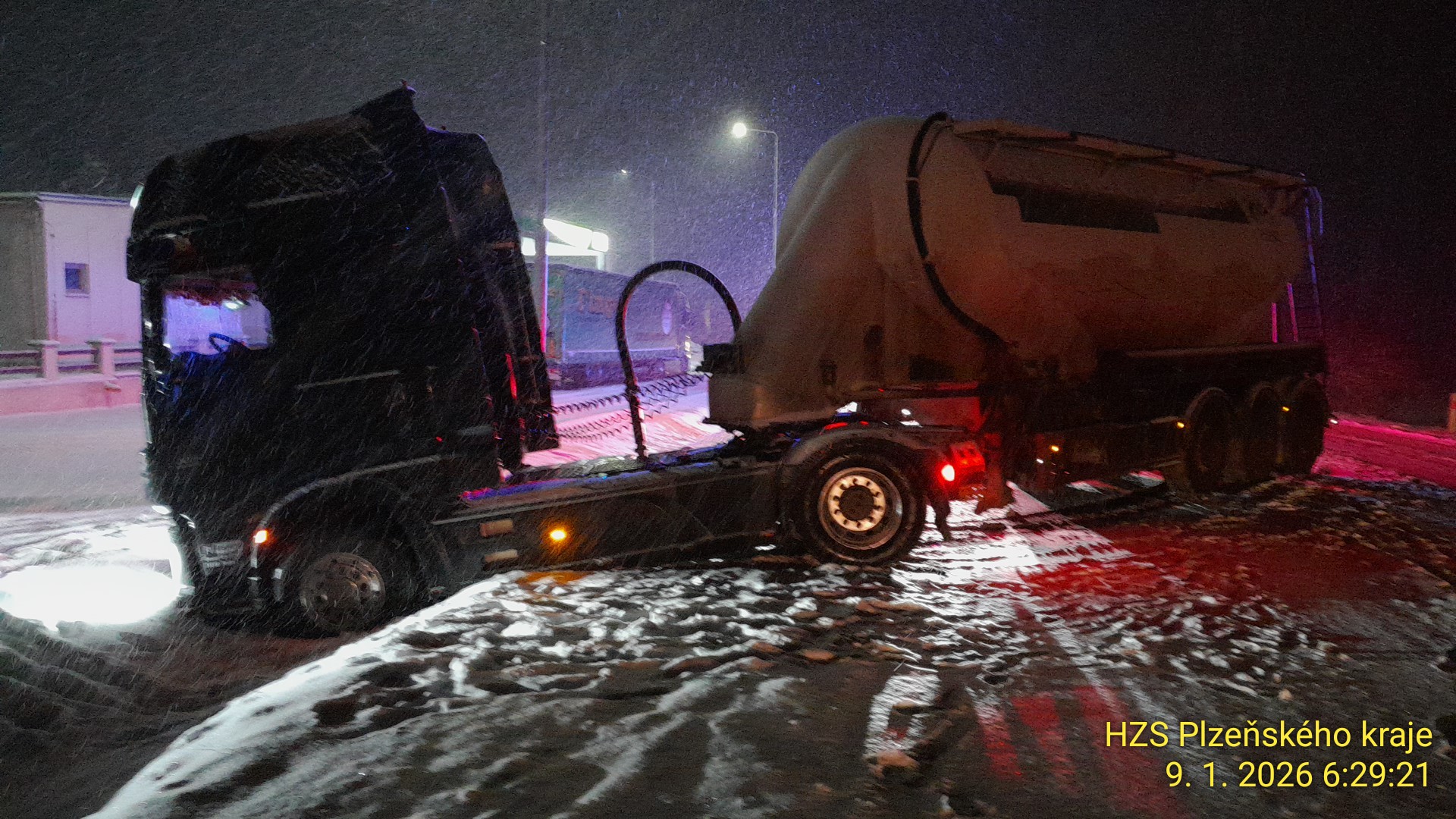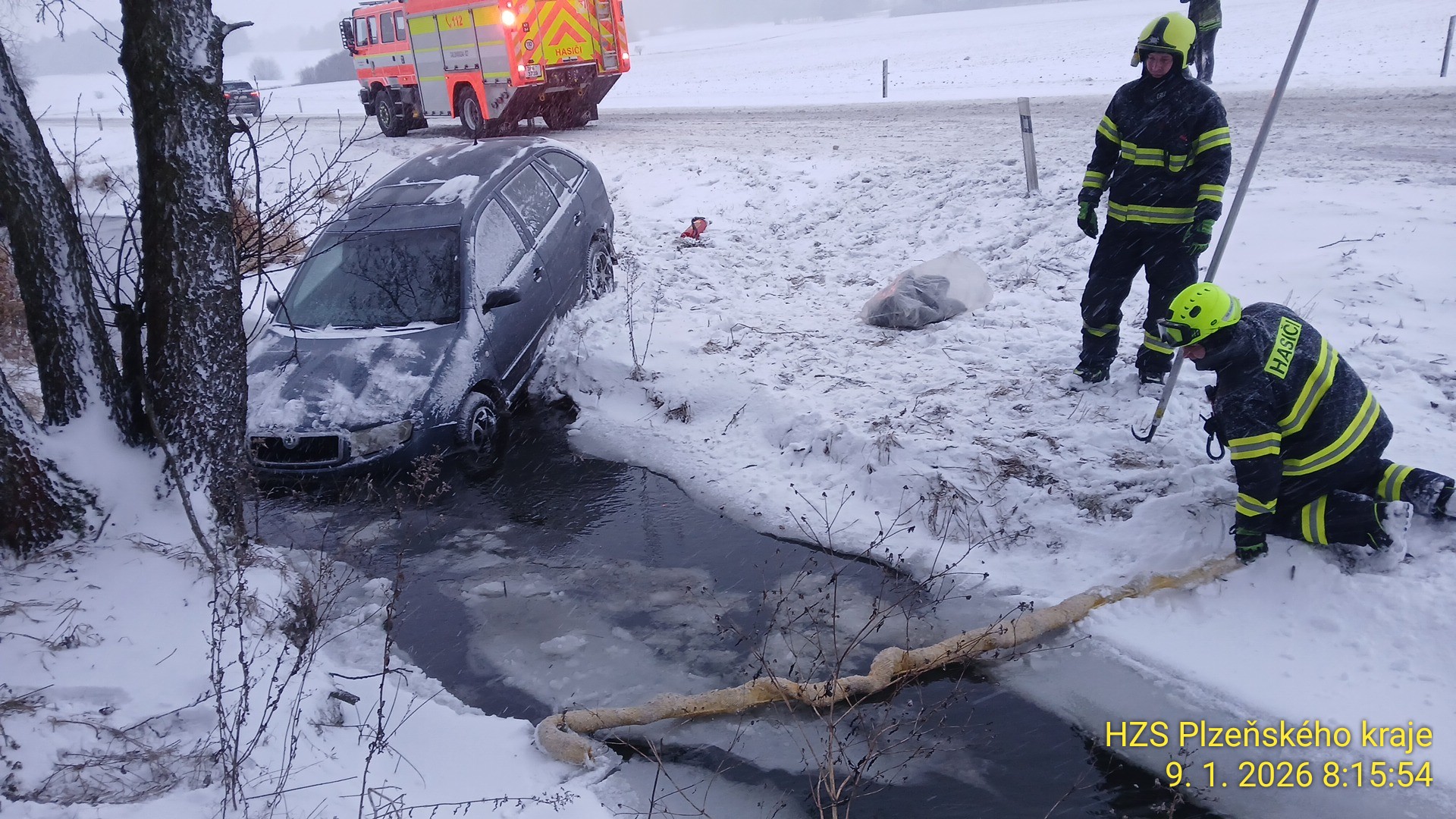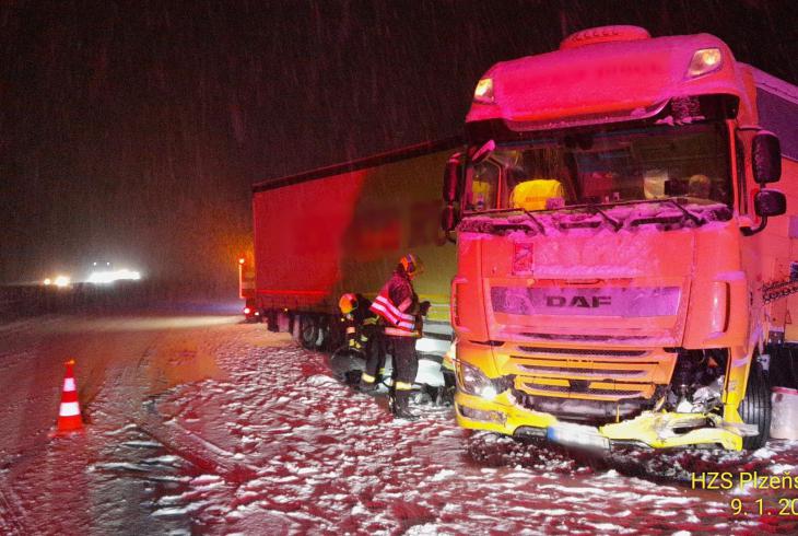 Následovalo několik nehod osobních vozidel, včetně střetu osobního auta a dodávky u Hrádku u Rokycan. Zejména v brzkých ranních hodinách počasí a dopravní situace komplikovaly jízdu hasičů na místa zásahů.