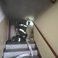 Na místo události bylo vysláno celkem šest jednotek hasičů a vyhlášen byl druhý stupeň požárního poplachu. Už při příjezdu se z oken nejvyššího patra valil hustý černý kouř, který signalizoval, že situace uvnitř je vážná. Hasiči okamžitě provedli rychlý průzkum, po schodišti natáhli hasební vedení až k zasaženému bytu a zahájili intenzivní hasební práce.