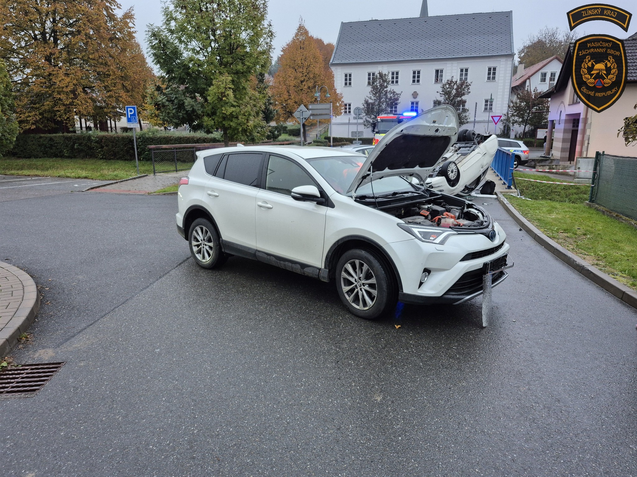 U obou vozidel hasiči provedli protipožární opatření a odpojení autobaterií. Vozidlo, které se otočilo na střechu, zajistili proti pohybu. Také u něj položili sorpční hady a rohože k zachytávání unikajících provozních kapalin.