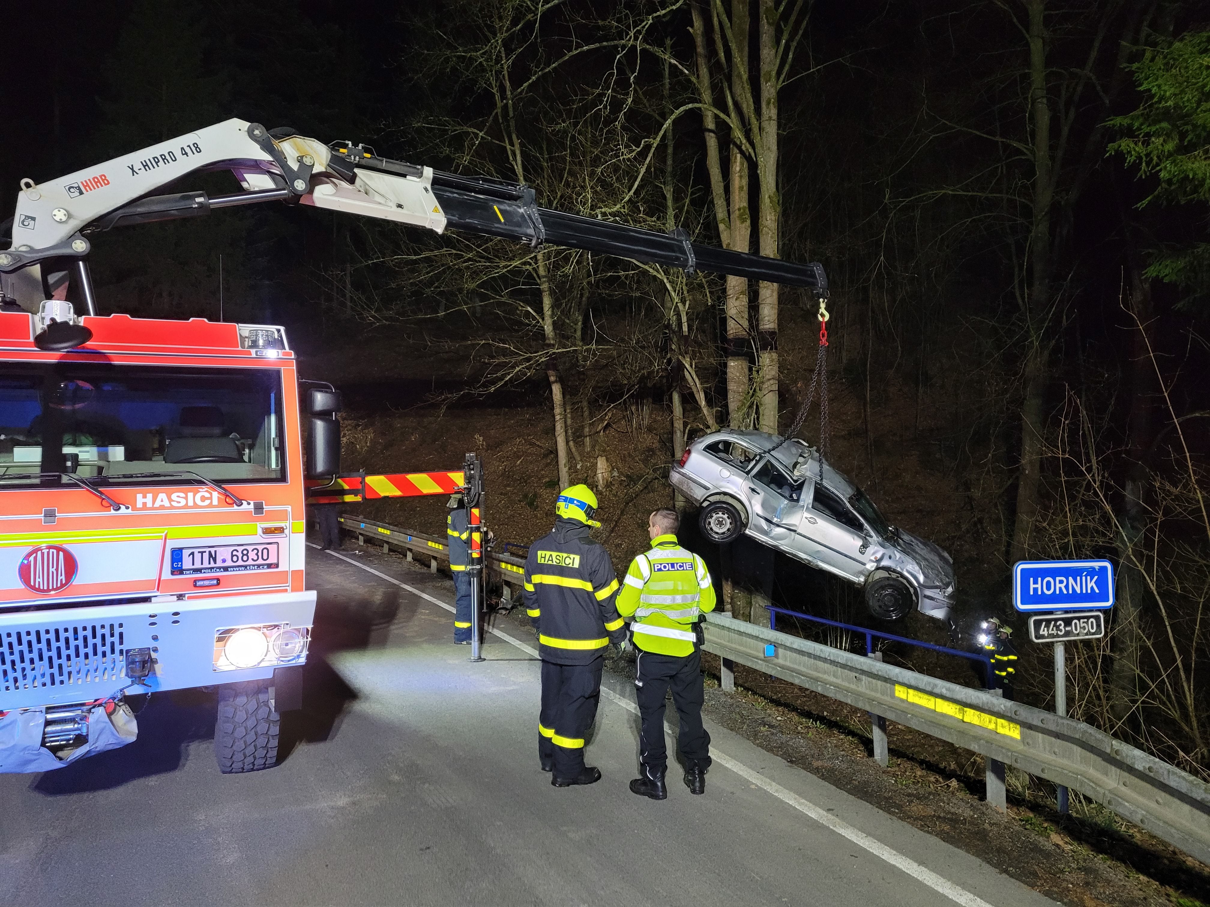 Po příjezdu na místo události hasiči zjistili, že vozidlo prorazilo zábradlí mostku a následně skončilo pod ním v korytě potoka. Ve vozidle cestovaly tři osoby, které se v době příjezdu jednotek již nacházely mimo havarovaný automobil. Všechny osoby byly předány do péče zdravotnické záchranné služby, přičemž jedna z nich byla transportována do nemocnice letecky, dvě osoby byly převezeny sanitními vozidly.