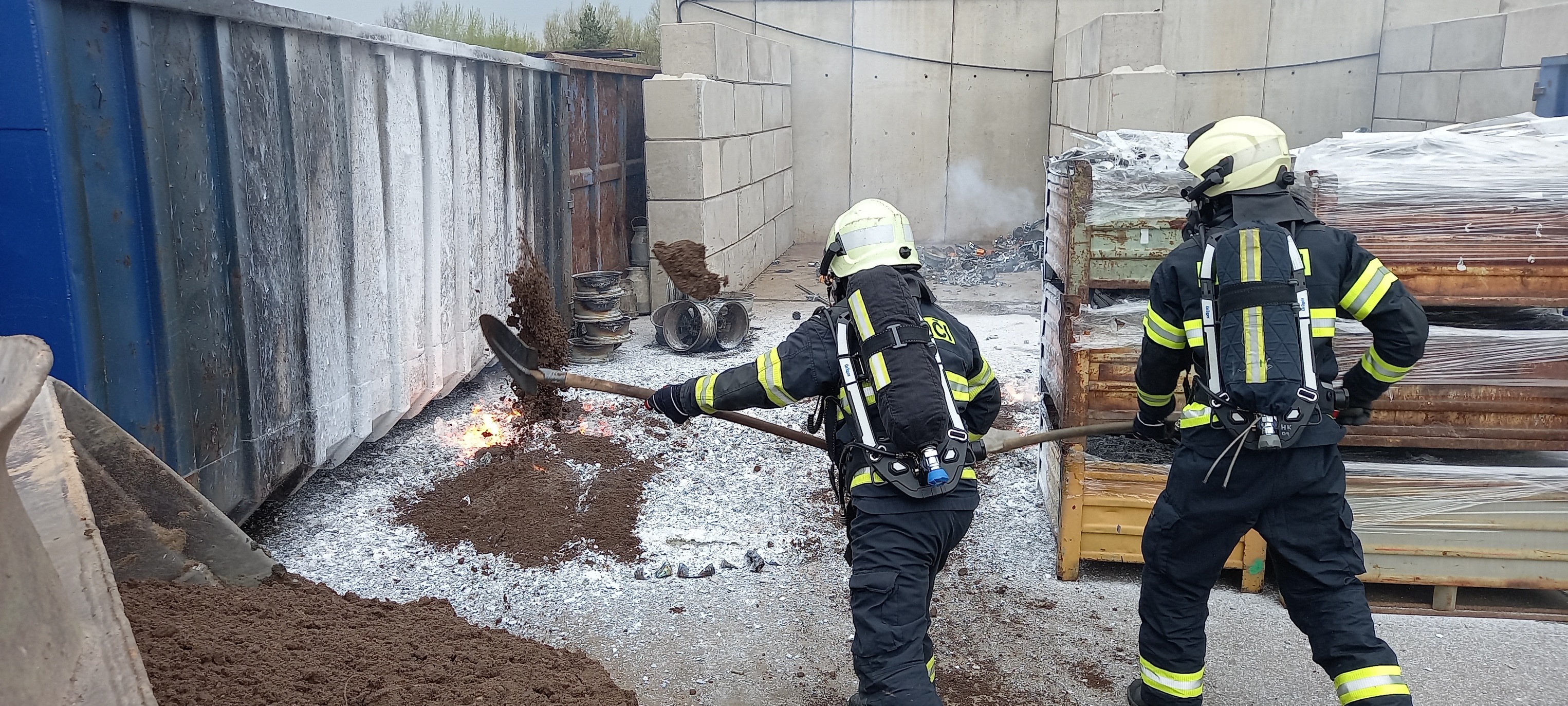 K požáru hořčíkového odpadu vyjížděly do Předměřic nad Labem v úterý ve 13:40 čtyři jednotky hasičů. V době příjezdu jednotek na místo požáru probíhalo intenzivní hoření odpadu na volné skladovací ploše. Hasiči nejprve jedním proudem opatrně ochlazovali blízký skladovaný materiál, tak aby nedošlo ke kontaktu hořčíku s vodou.
