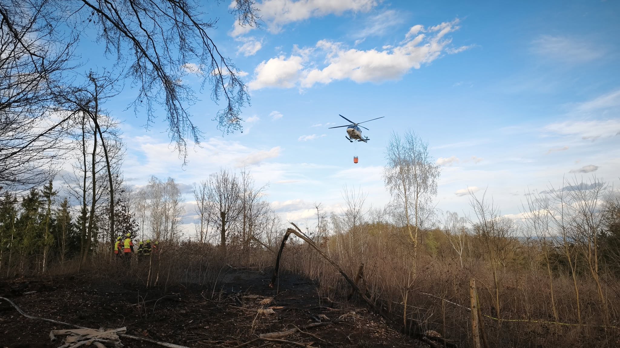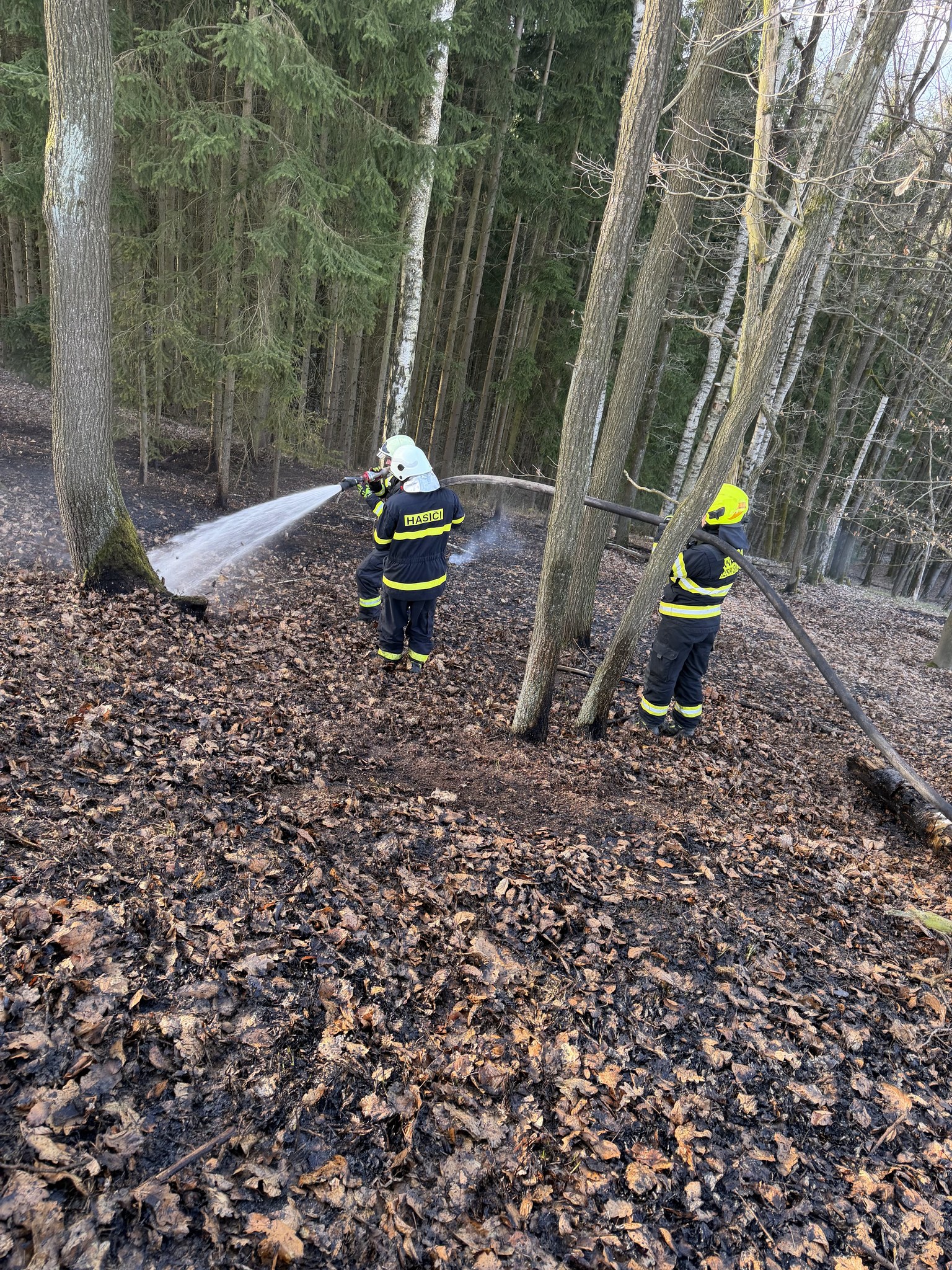 Pro zajištění dostatečného množství vody bylo zřízeno čerpací stanoviště na nedalekém rybníku a probíhala kyvadlová doprava vody. K hašení byl nasazen také vrtulník s bambivakem, který provedl 18 shozů. Po lokalizaci požáru hasiči provedli důkladné dohašení skrytých ohnisek a kontrolu pomocí termokamery.