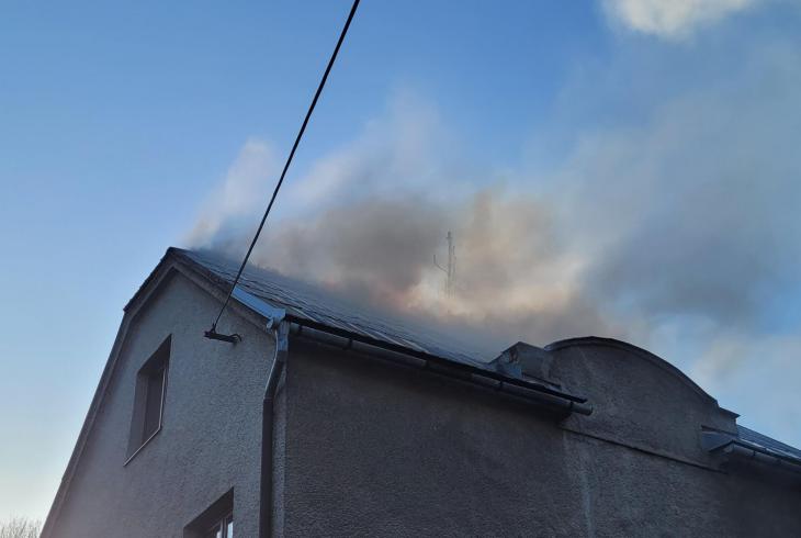 Po příjezdu hasiči zjistili, že požár zasáhl půdní prostory třípodlažního domu a přibližně polovinu střešní konstrukce. Jednotky okamžitě zahájily hasební práce a požár se podařilo dostat pod kontrolu přibližně za hodinu a půl od jeho nahlášení. Kvůli skrytým ohniskům museli hasiči rozebrat část plechové střešní krytiny.