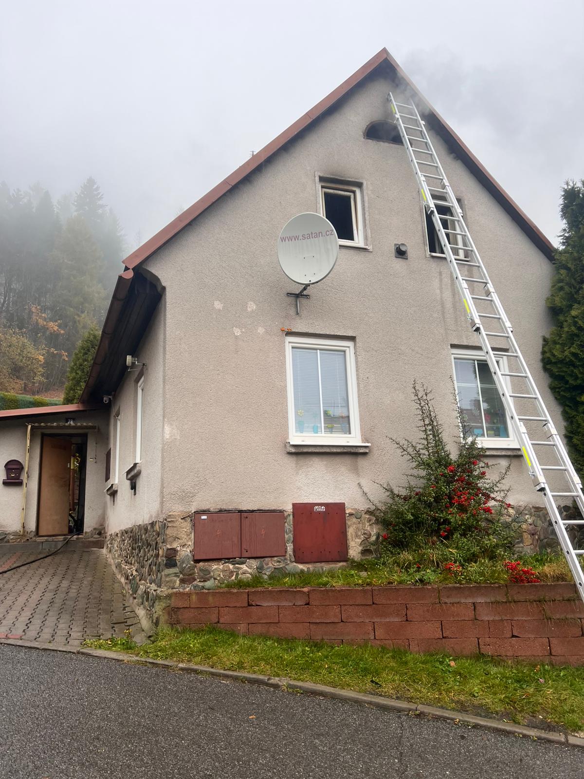 Při příjezdu jednotek na místo bylo zjištěno, že požárem je zasažen pokoj v podkroví rodinného domu a z pod střechy objektu se valí velké množství kouře. Zásah jednotek probíhal nasazením hasebních proudů z vnitřních prostor i z vnějšku objektu.