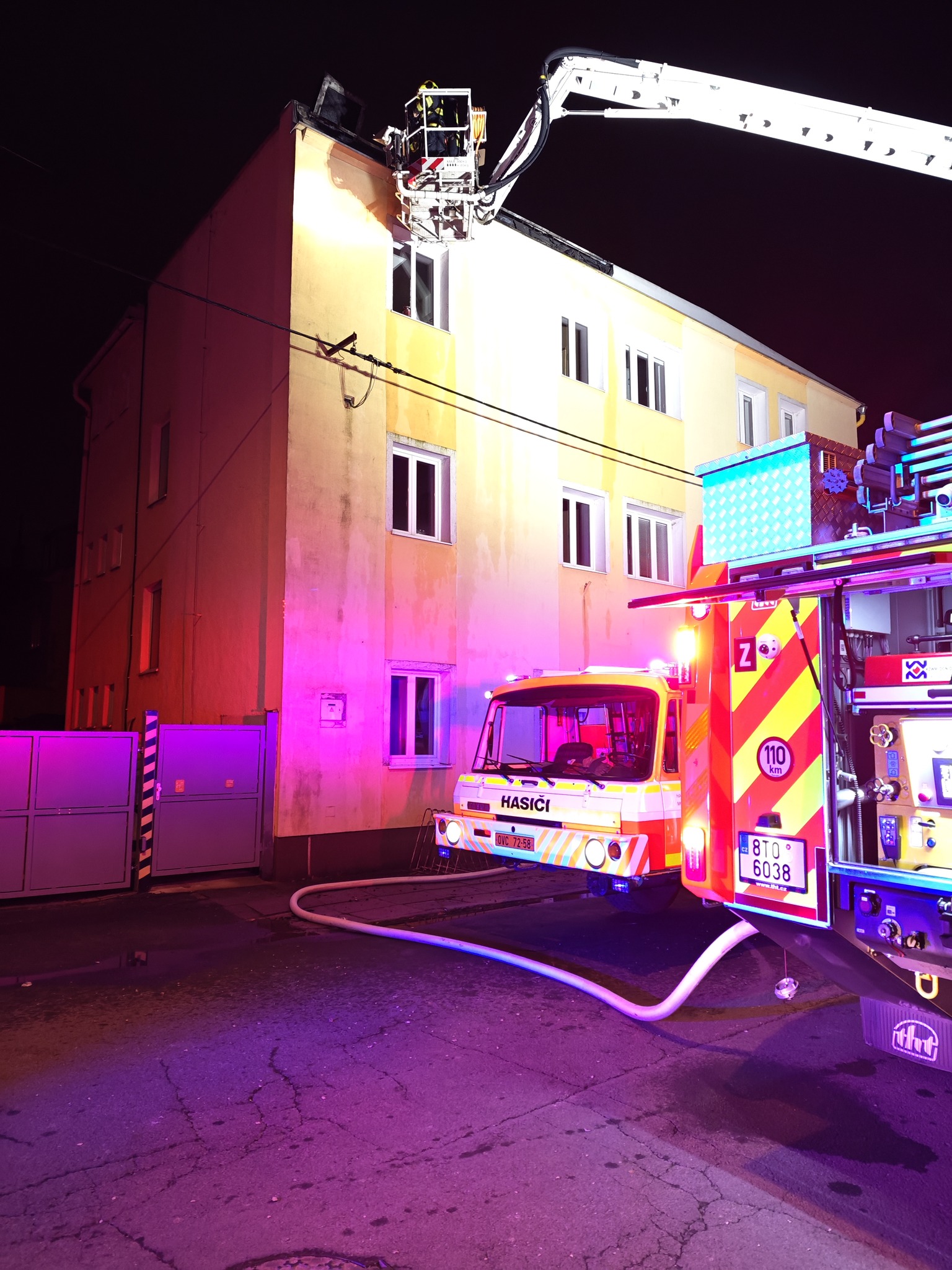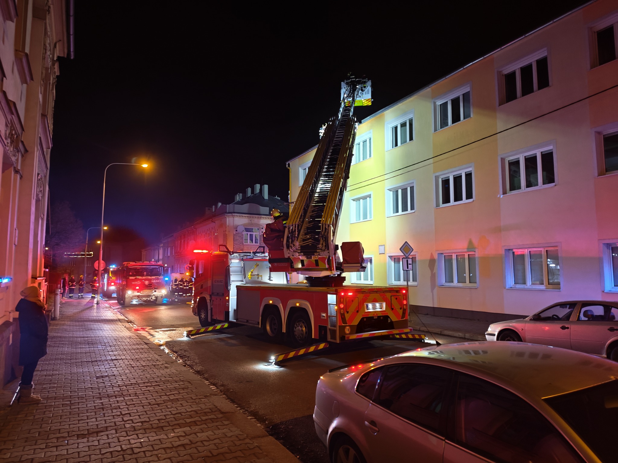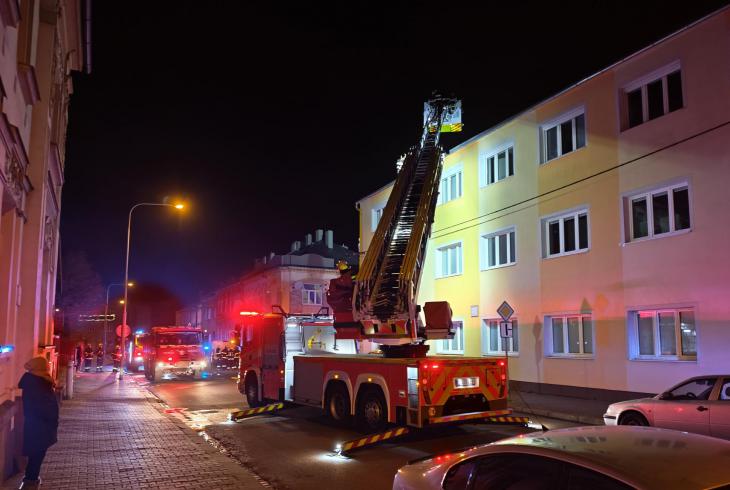 Pět jednotek hasičů zasahovalo u požáru střechy třípodlažního domu v Krnově, který způsobil odpal zábavní pyrotechniky.