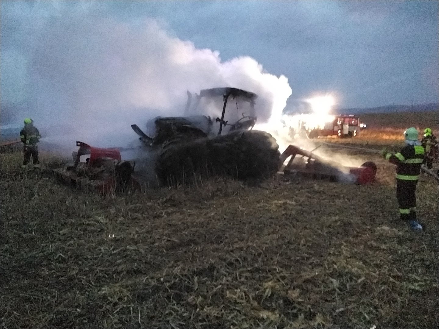 Po příjezdu byl traktor zasažen plameny v plném rozsahu.