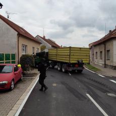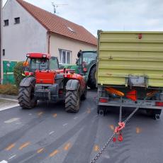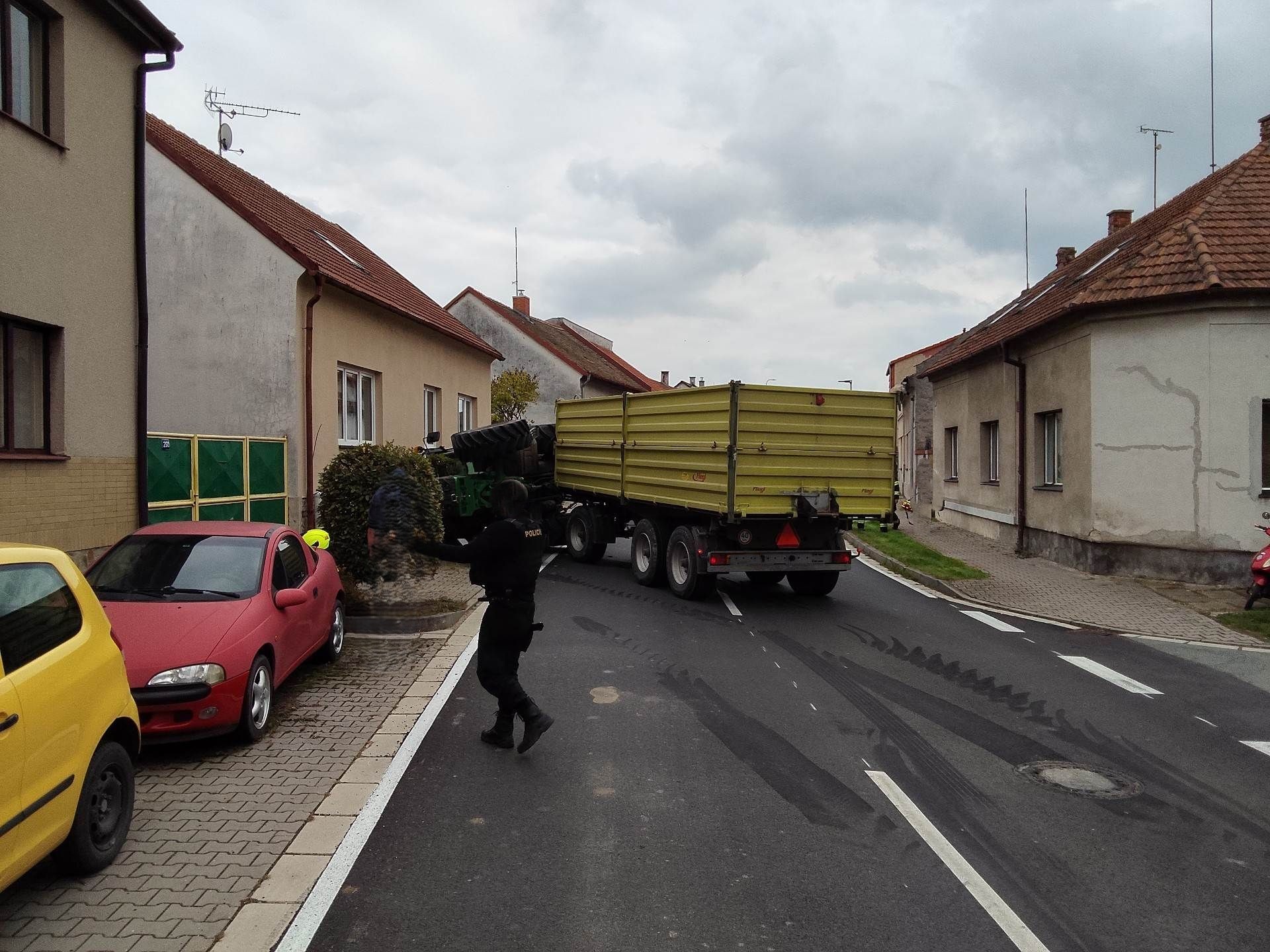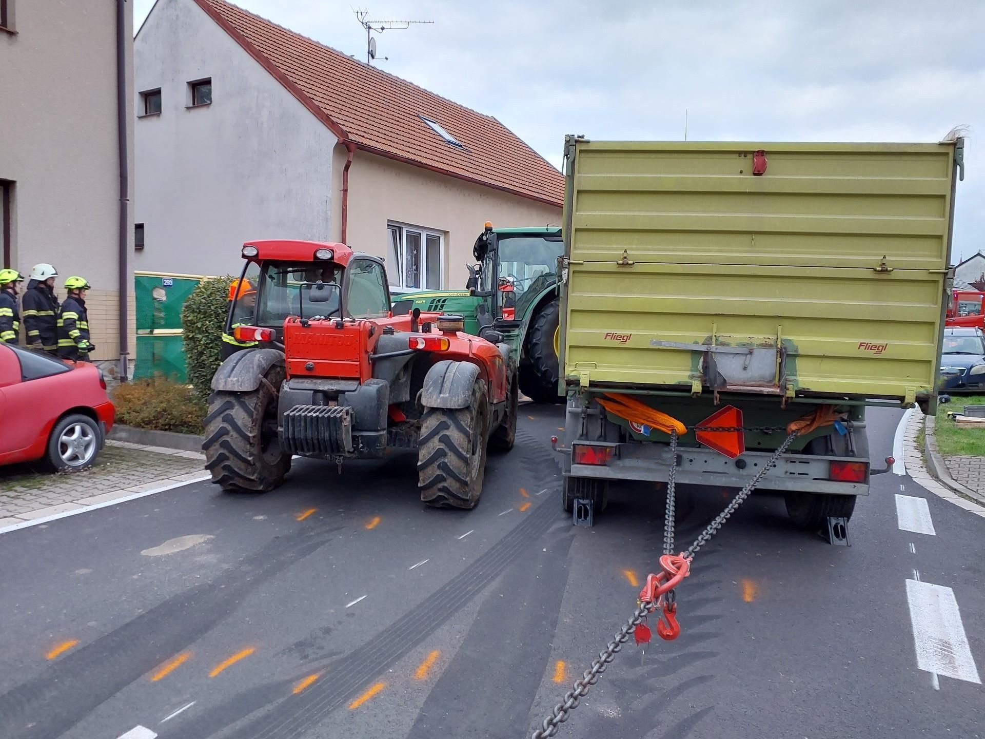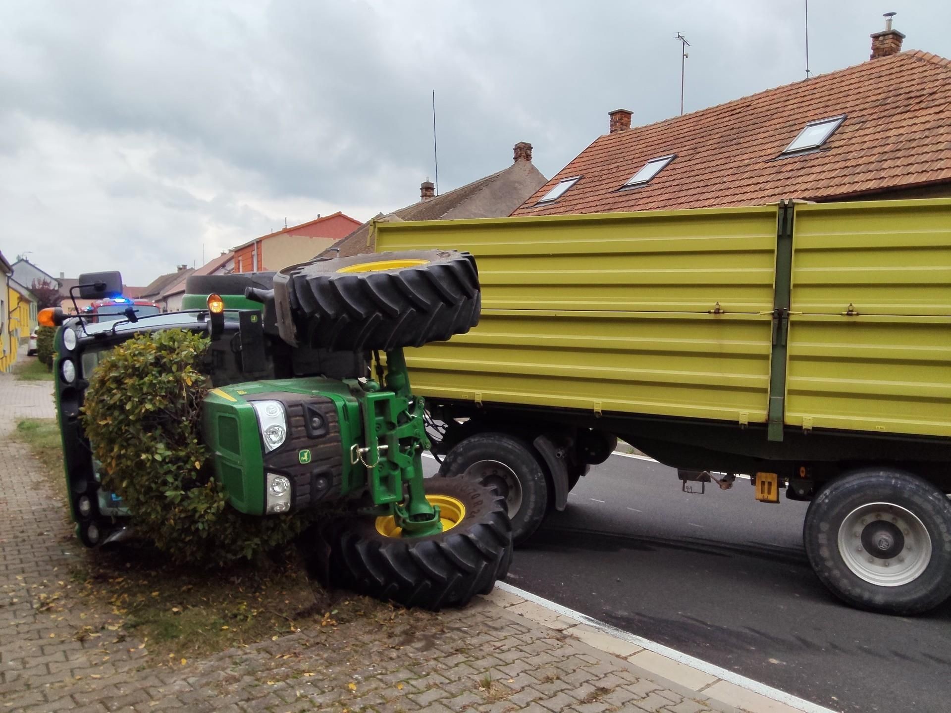 Po příjezdu na místo zásahu bylo zjištěno, že traktor s prázdným přívěsem se převrátil přes celou vozovku. Nehoda se naštěstí obešla bez zranění, došlo pouze k drobnému úniku provozních kapalin.