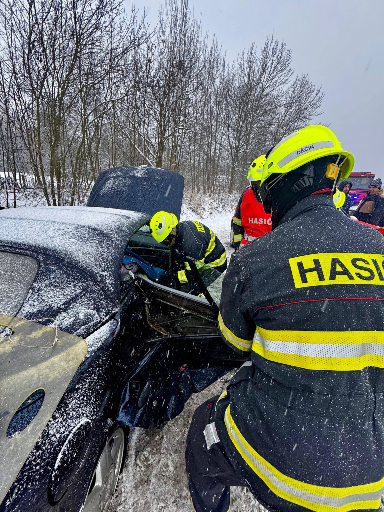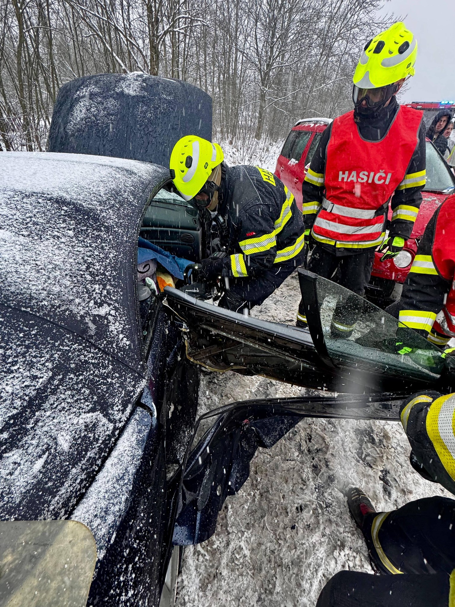 Při nehodě došlo ke zranění tří osob. Jedna osobu hasiči vyprostili pomocí hydraulického vyprošťovacího zařízení.