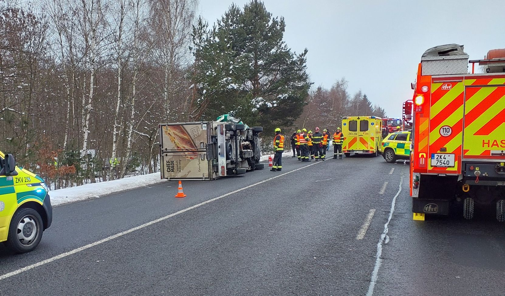 Jen o pár minut později přijali hasiči další oznámení o nehodě na téže silnici na úrovni Lomnice.