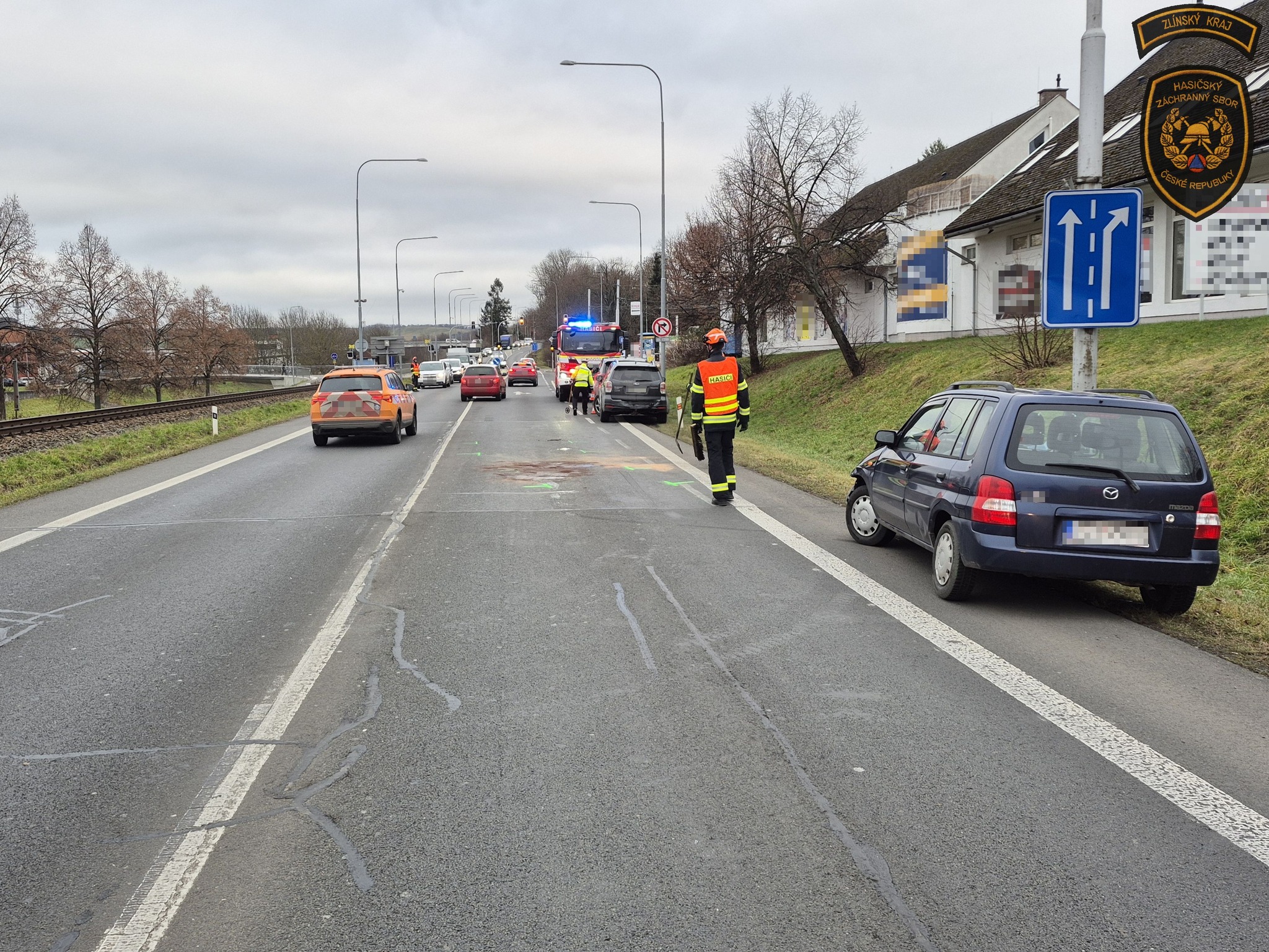 V pondělí krátce po 13. hodině došlo na silnici I/49 ve Zlíně, ve směru na Vizovice poblíž čerpací stanice, k dopravní nehodě tří osobních vozidel. Na místo okamžitě vyrazily dva cisternové vozy profesionálních hasičů ze stanice Zlín.