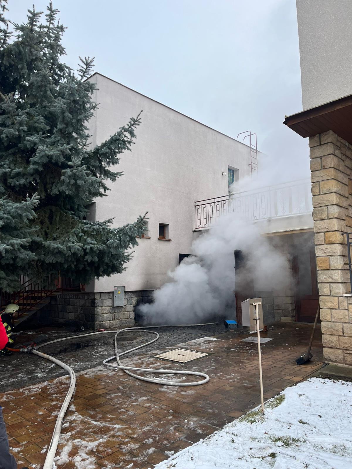 Po příjezdu na místo jednotky potvrdily požár v suterénních prostorách objektu, který provázelo silné zakouření. Hasiči zahájili zásah dvěma vodními proudy v dýchací technice a současně provedli průzkum objektu.