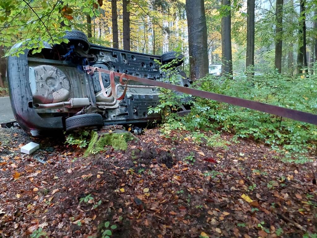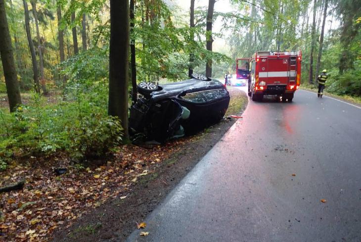 Řidič osobního automobilu zde z dosud nezjištěných příčin vyjel mimo vozovku a vozidlo skončilo převrácené na boku. Při příjezdu hasičů byl řidič zraněn, avšak při vědomí. Hasiči mu poskytli první předlékařskou pomoc a následně jej předali do péče přivolaným zdravotníkům zdravotnické záchranné služby.