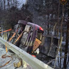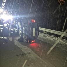 Řidič osobního vozidla zde vyjel mimo komunikaci a s automobilem skončil na boku vedle silnice za svodidly. Ve vozidle cestovaly čtyři osoby. Dvě z nich utrpěly zranění a byly předány do péče posádky zdravotnické záchranné služby.
