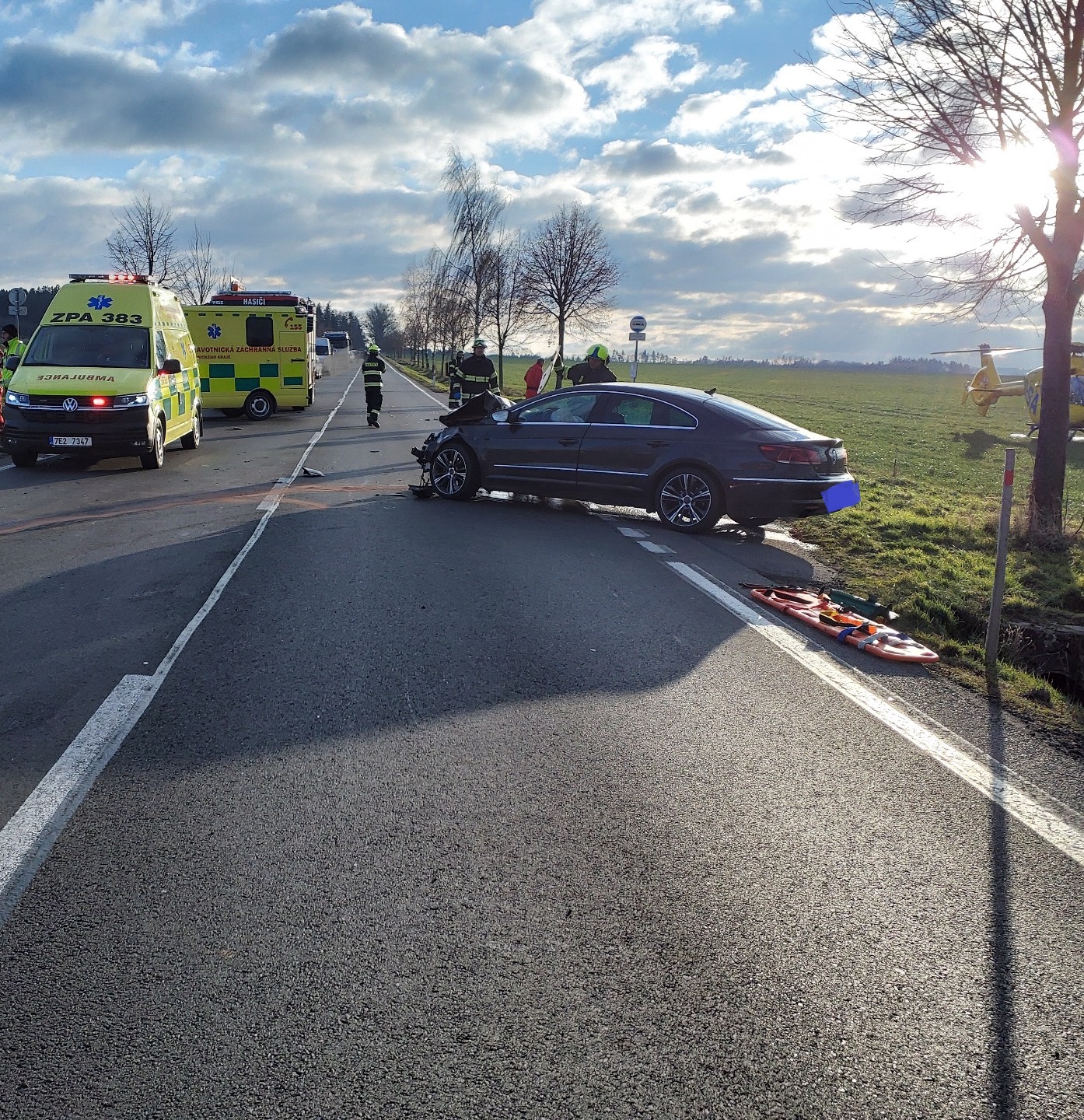 Na místo byly povolány dva vrtulníky Letecké záchranné služby. Jednu zraněnou osobu transportoval do nemocnice vrtulník, druhá zraněná osoba byla převezena ZZS. Tři osoby bohužel na místě dopravní nehody zemřely. Příčinu dopravní nehody vyšetřuje policie.