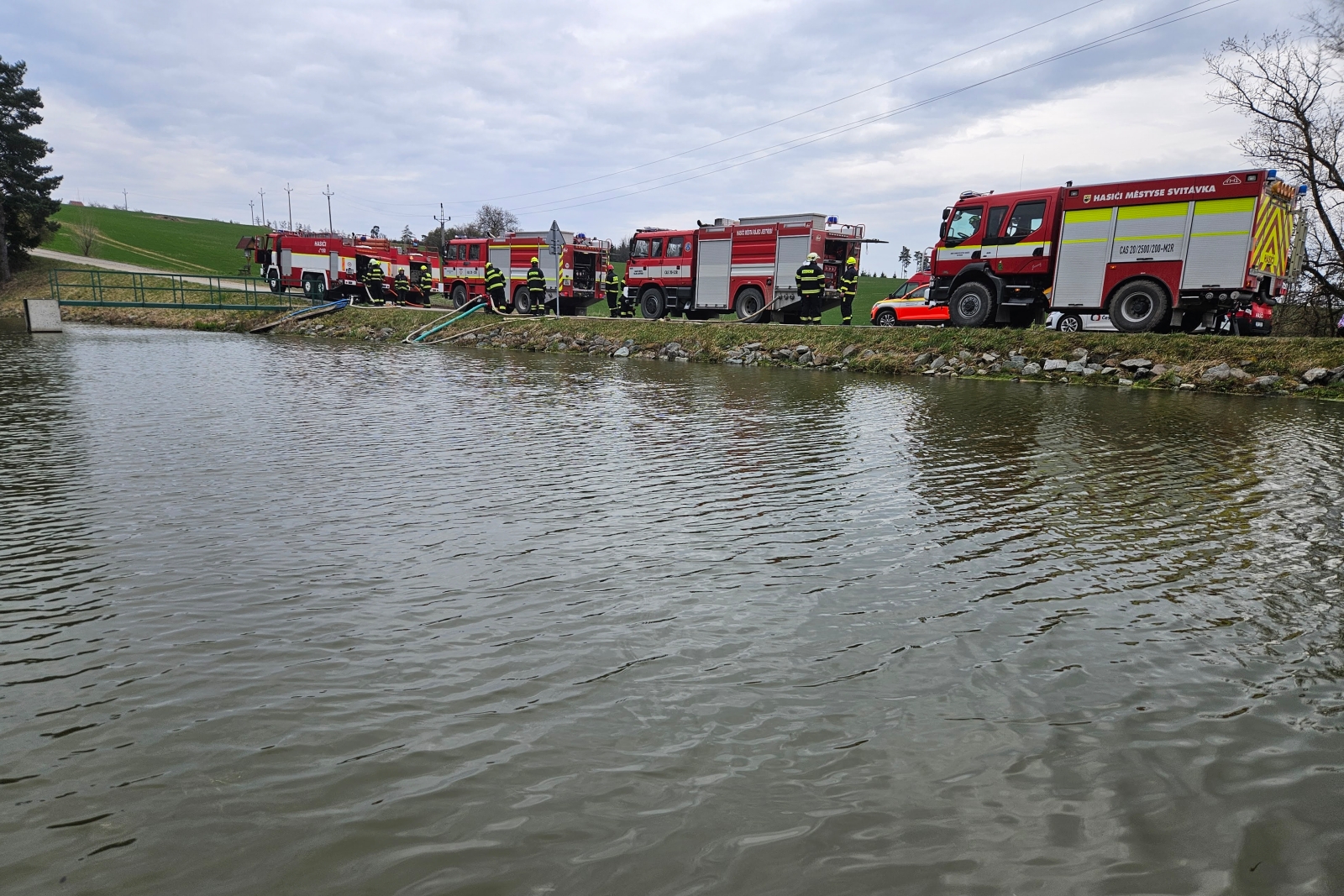 U obce Kuničky na rybníku byla zřízena čerpací stanoviště pro cisterny a vrtulník. Letecká služba Policie ČR, společně s hasičskými leteckými záchranáři na palubě, provedli celkem 50 shozů vody na požářiště. Cisterny dopravovaly vodu do vzdálenosti necelých 5 km. Plameny hasiči dostali pod kontrolu po čtyřech hodinách od příjezdu.