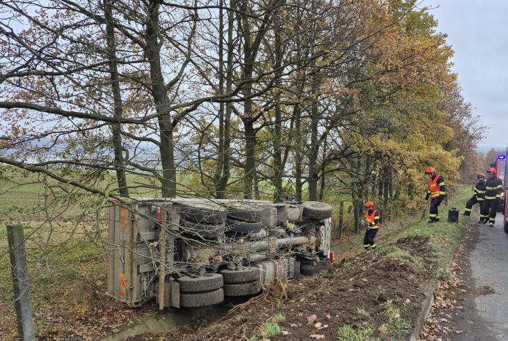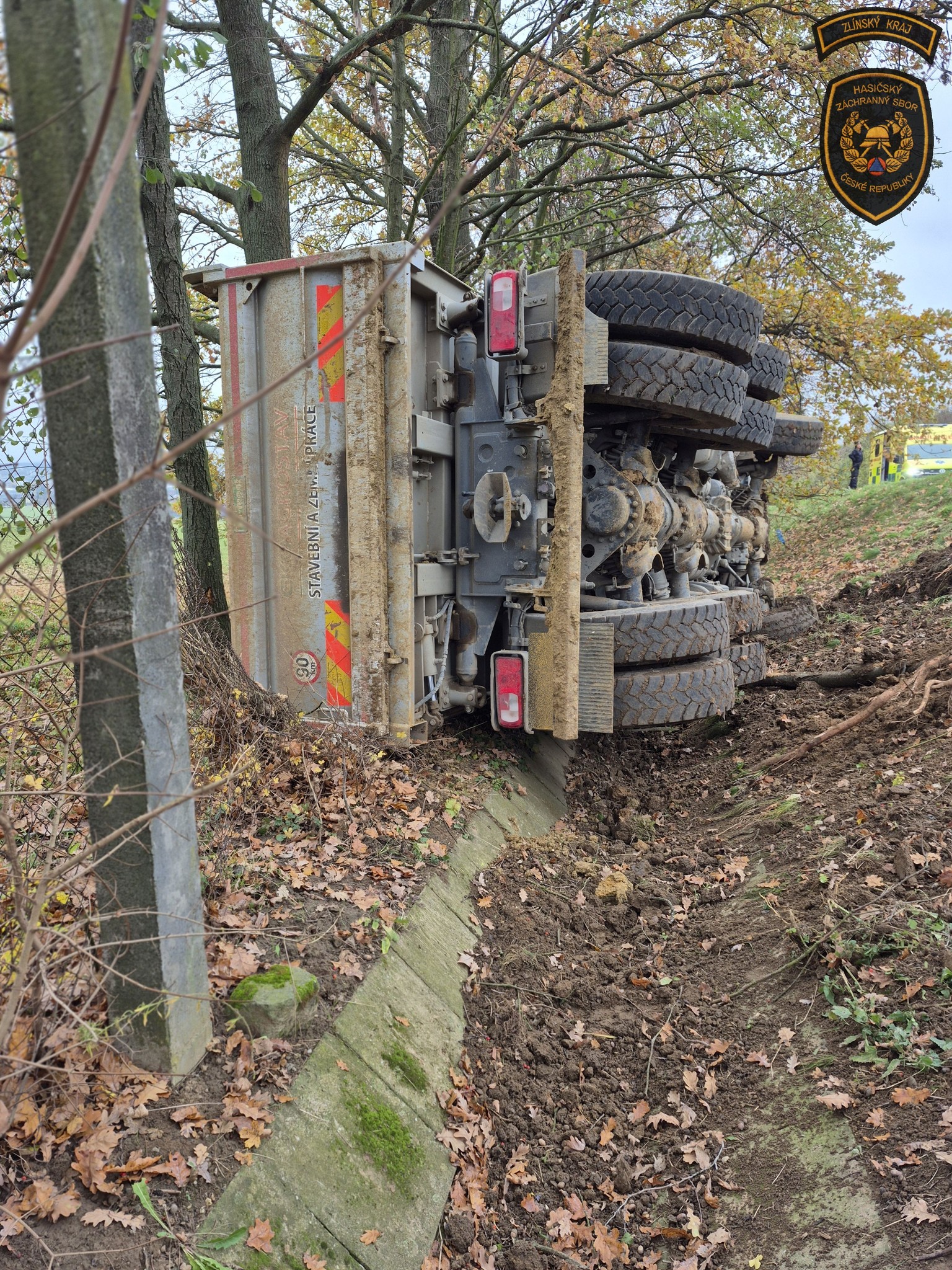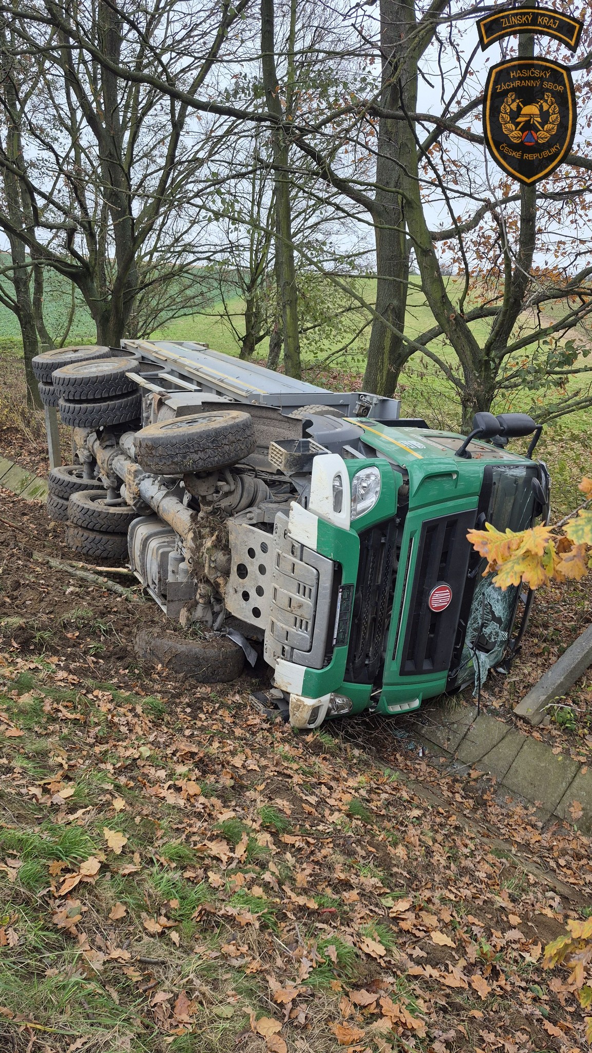 Profesionální hasiči ze Zlína a Otrokovic zasahovali ve čtvrtek dopoledne v Otrokovicích - Kvítkovicích u havárie nákladního vozidla, se kterým sjel řidič ze silnice a převrátil se na bok. Řidič skončil v péči posádky zdravotnické záchranné služby a následně v nemocnici k provedení dalších vyšetření.
