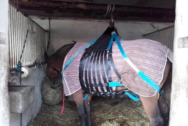 Na přání veterinární lékařky, která se na zásahu rovněž podílela, zůstala kobylka dále ještě zavěšena.