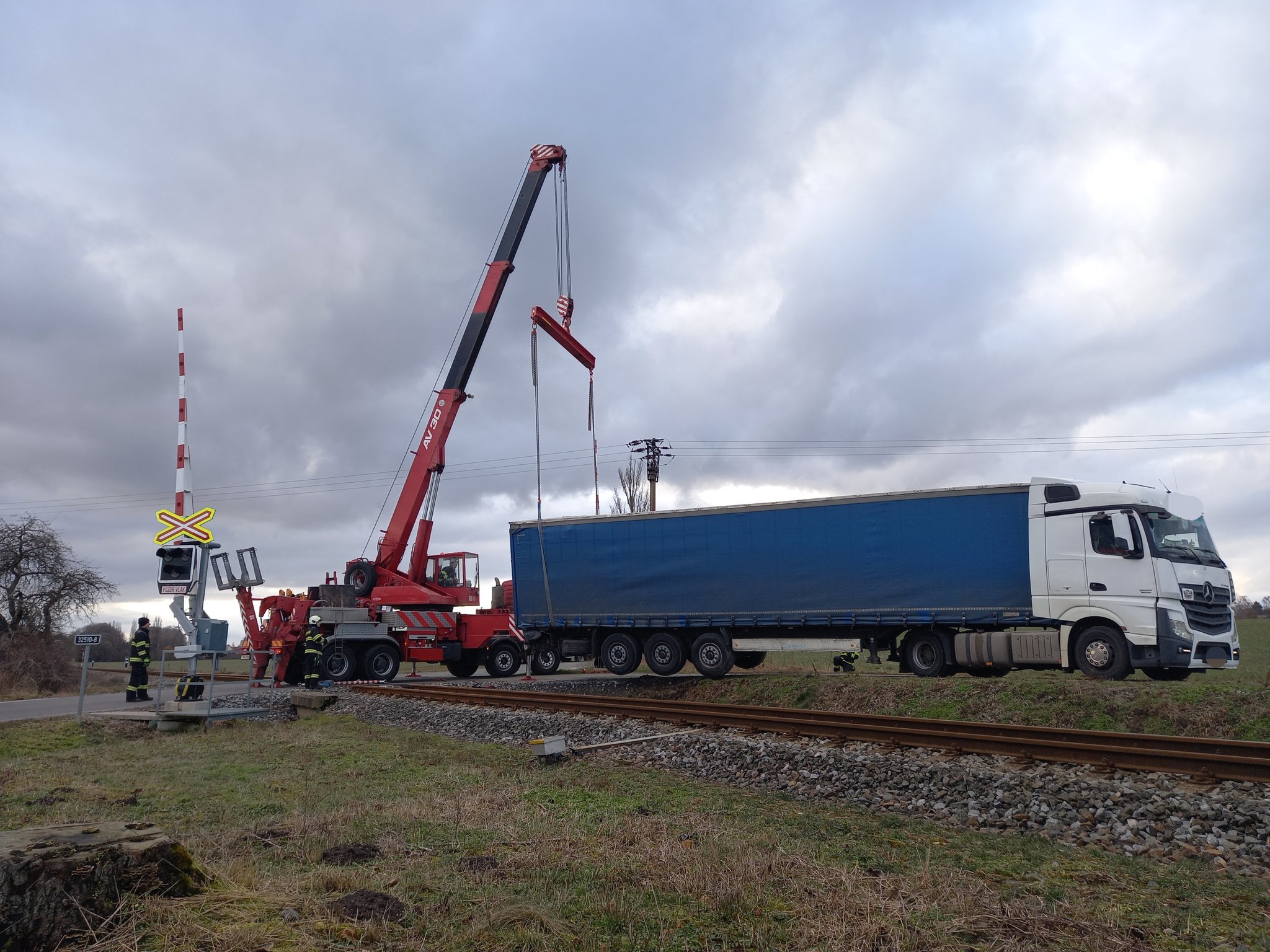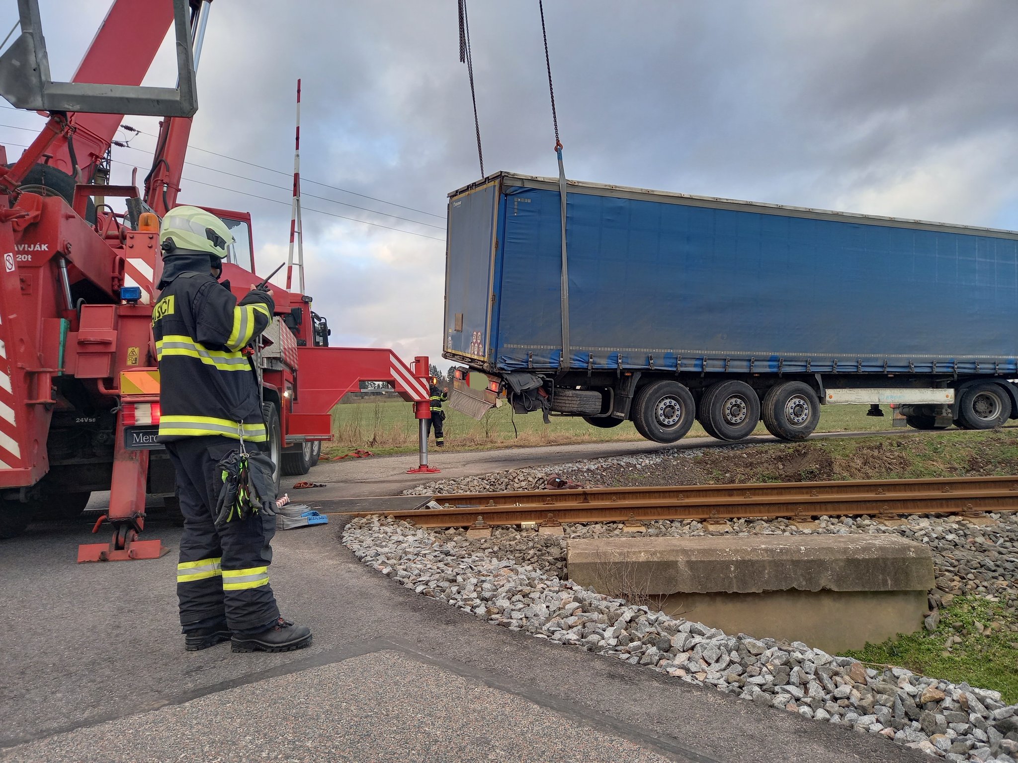 v úterý na železničním přejezdu mezi obcemi Chvalina a Hořice na Jičínsku hasiči pomocí těžké techniky vyprostili kamion, který sjel návěsem do kolejiště. Událost se obešla bez zranění. Po dobu zásahu byl přerušen provoz na železnici i na místní komunikaci.