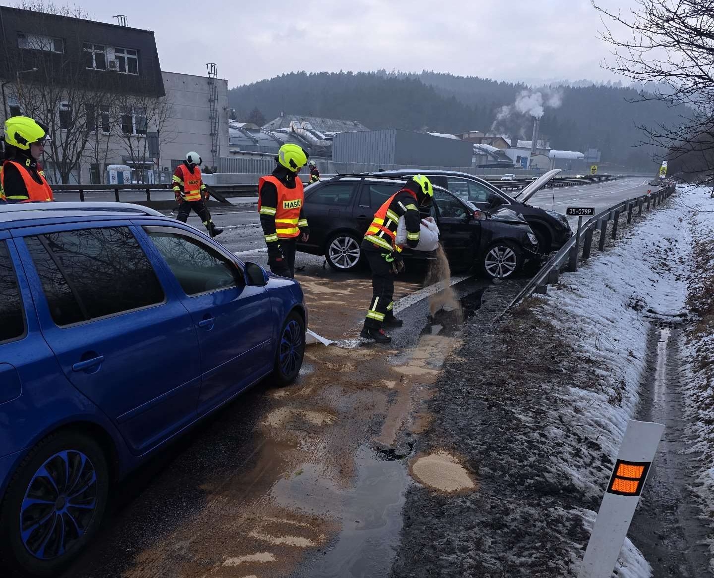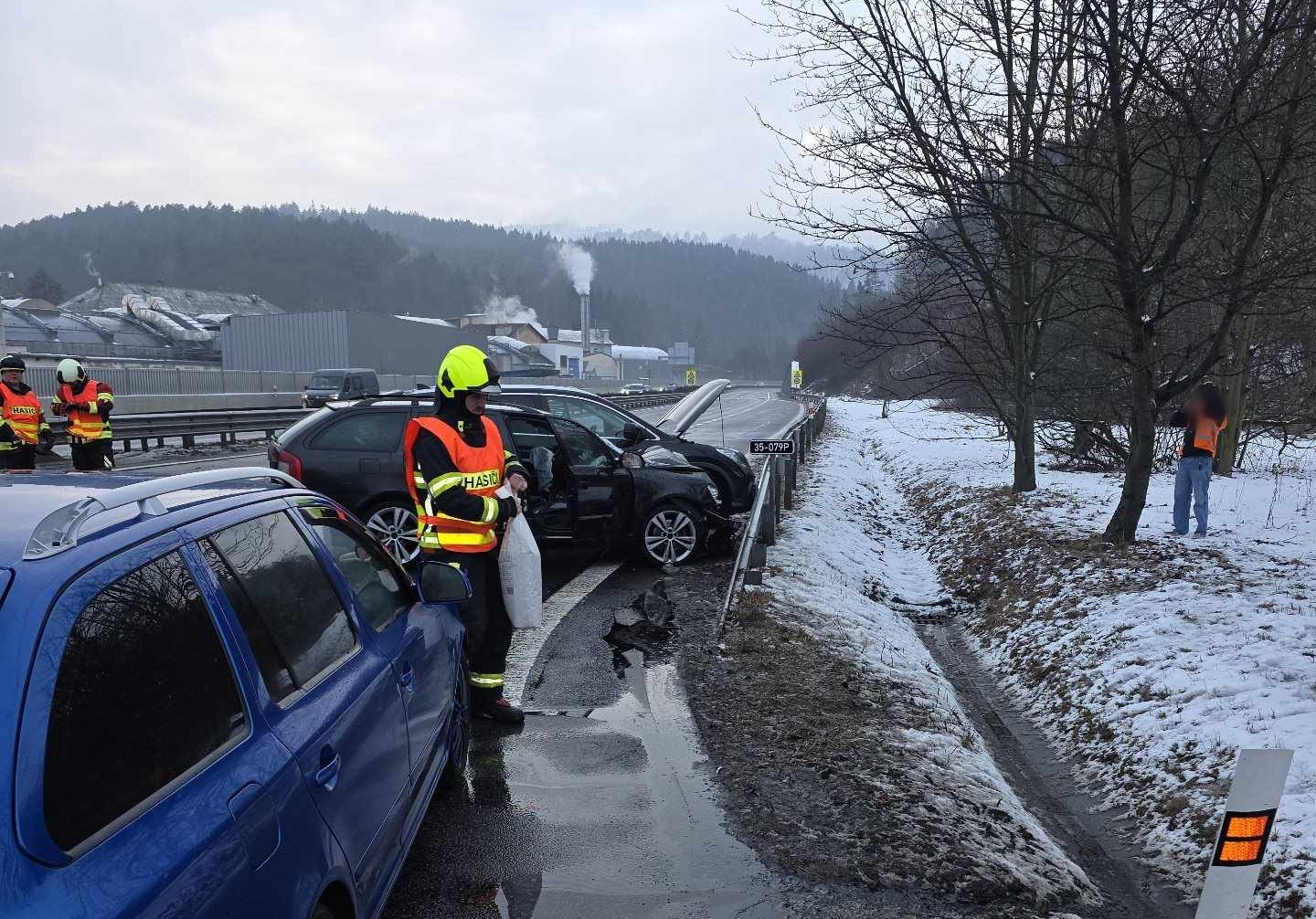 Na místo spěchali liberečtí profesionální a hodkovičtí dobrovolní hasiči. Zajistili místo nehody, provedli protipožární opatření a zabezpečili uniklé provozní kapaliny, které zasypali sorbentem. Také na silnici uklidili trosky vozidel.