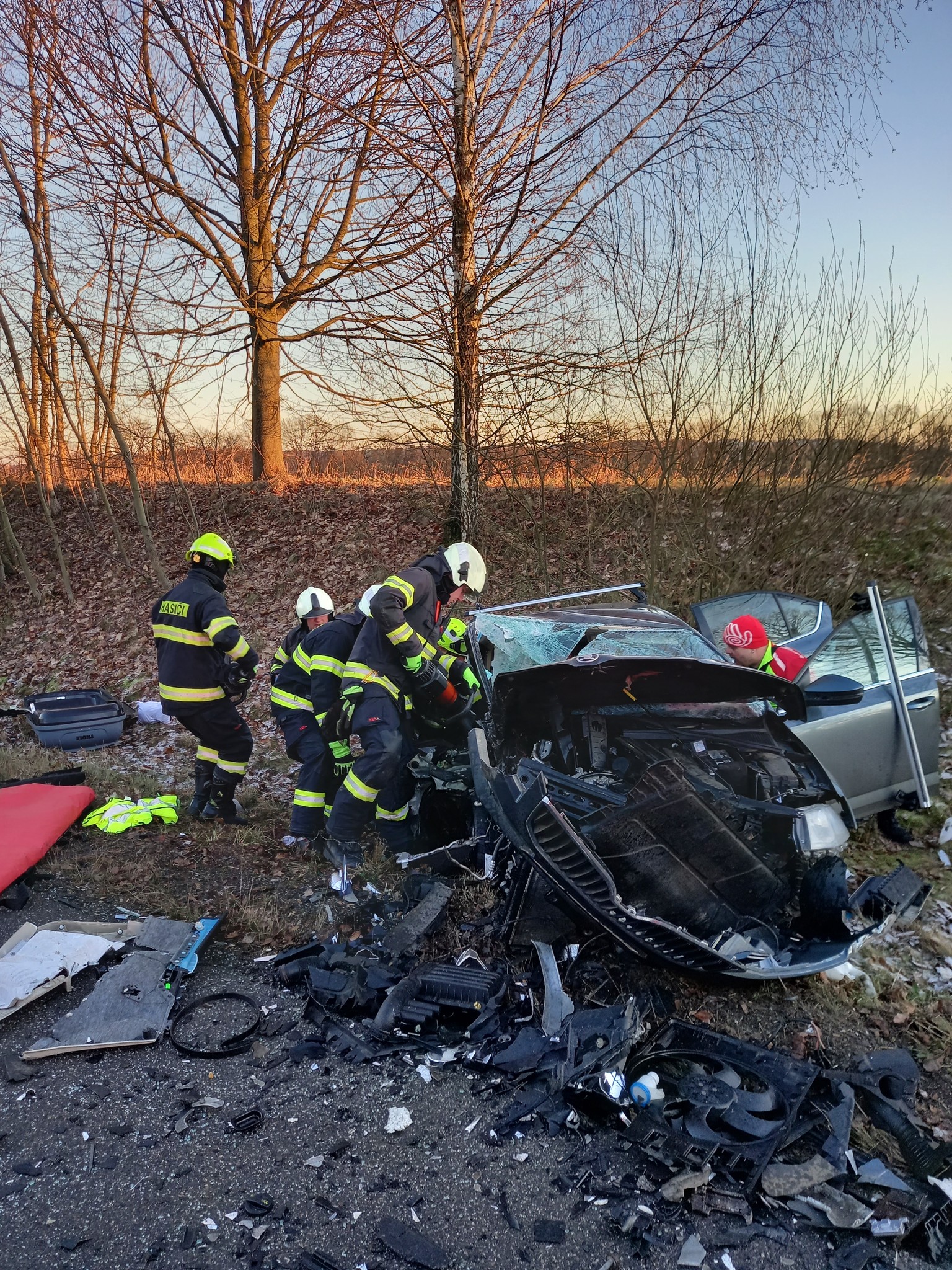 Na místě bylo zraněno 8 osob, které si do péče převzala ZZS KHK. Jednu osobu hasiči museli z vozidla vyprostit pomocí hydraulického vyprošťovacího zařízení. Hasiči dále provedli osvětlení místa události, odstranění následků nehody a úklid komunikace od vyteklých provozních kapalin. Místo události bylo předáno Policii ČR k dalšímu šetření a dokumentaci. V průběhu zásahu byla komunikace zcela uzavřena.